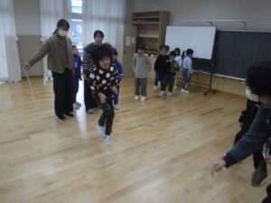 廊下には蓄熱暖房、「鉄棒ルーム」「なわとびルーム(仮称)」にエアコンが入っていますので、休み時間も運動しています。種目によっては、「寒い体育館」よりも、1階の「運動ゾーン」で運動できます。しかし、1年生の上達のスピードには驚かされます。ぐるぐる回り続けています。冬に「鉄棒」ができる環境は、すばらしいです。