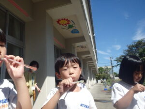 長くとりくんできた「あわあわだいへんしん」。いよいよ、最終日です。これまでのことを思い出して、まとめをしました。秋は、いよいよ「むし」。森田先生が苦手な分野だそうですが、はりきっていきましょう。
